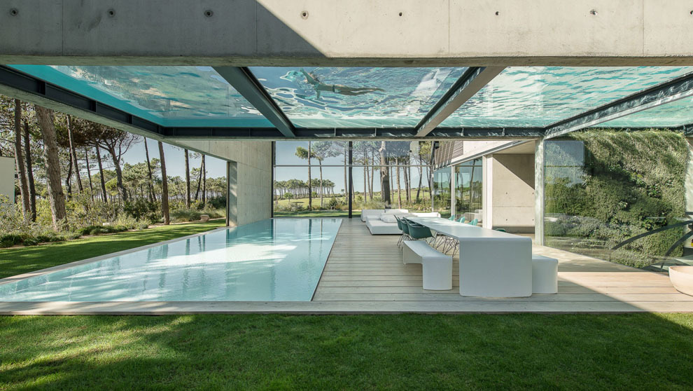 Dues piscines exteriors que es creuen donant-li una personalitat única a la casa dissenyada pels arquitectes Marc Martínez Marinho, César Marques i Jose Guedes Creu, de Guedes Creu Arquitectes. Qui no voldria passar aquí uns dies de relax a Portugal! Fotografia: Ricardo Oliveira Alves